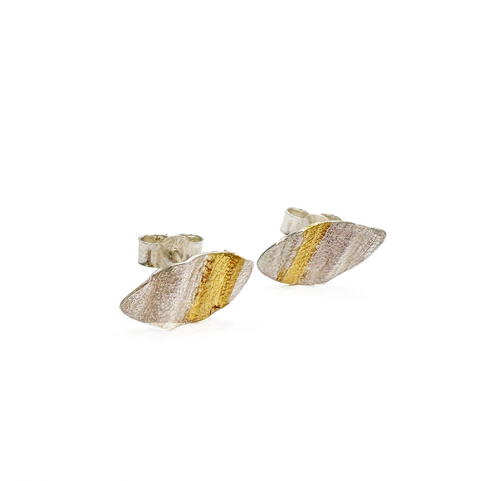 Jessica originally trained as a textile designer and in her jewellery-making she draws extensively on her textile/print skills. Layering textures to create pattern, she enhances designs by selectively fusing golds to the silver surface using an ancient Korean technique called kuem-boo. Oxides and finishing methods provide depth and colour. Inspiration comes to Jessica in many forms : sometimes her starting point may be the discovery of a new texture or technique. Observations and drawings of the natural world have always been an important source of ideas, as has her constant collecting of anything and everything that might hold the kernel of inspiration.
